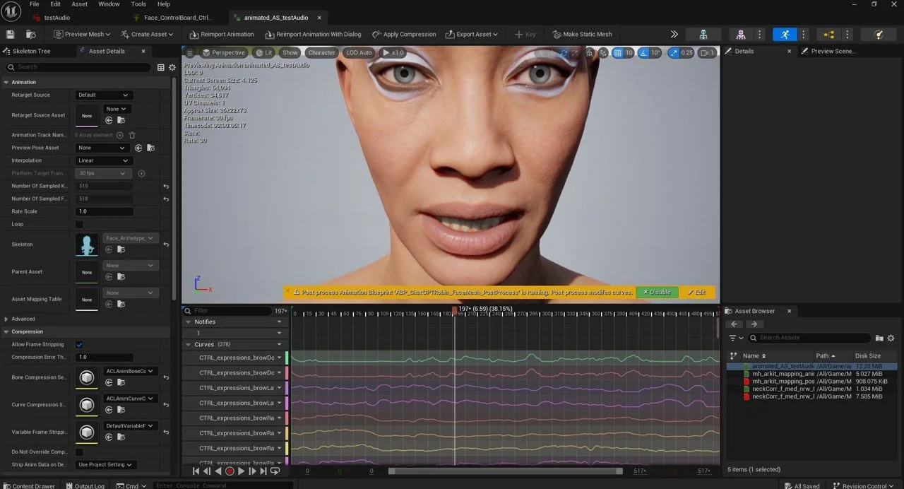 MetaHuman lipsync animation inside Unreal Engine, driven by AI-generated dialogue between the two Large Language Models (DeepSeek and Chat GPT).
